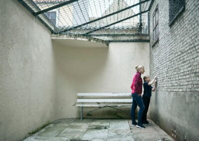 I Arrestens udstilling er der børnevenlige skilte, der er skrevet i et let tilgængeligt sprog. De fortæller om både fortidens og nutidens fængselsvæsen og giver plads til gode snakke om forskellen på ret og straf. Besøget er også velegnet til en samtale om, hvordan det er at have et familiemedlem i fængsel.