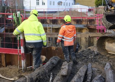 Det er yderst sjældent at arkæologer finder 800 år gammelt bolværk fra en havn. Ikke desto mindre er det sket i Faaborg. I forbindelse med kloakarbejde stødte FFV Energi og Miljø på nogle meget massive stolper, og Øhavsmuseets arkæologer, der var i gang med forundersøgelser på stedet, kunne hurtigt se, at pælene føjede en vigtig brik til historien om Faaborg. Pælene har siden vist sig at være vidnesbyrd om, at Faaborg allerede på Saxos tid har haft en anselig størrelse. Det er en viden, som ikke tidligere har været kendt.
